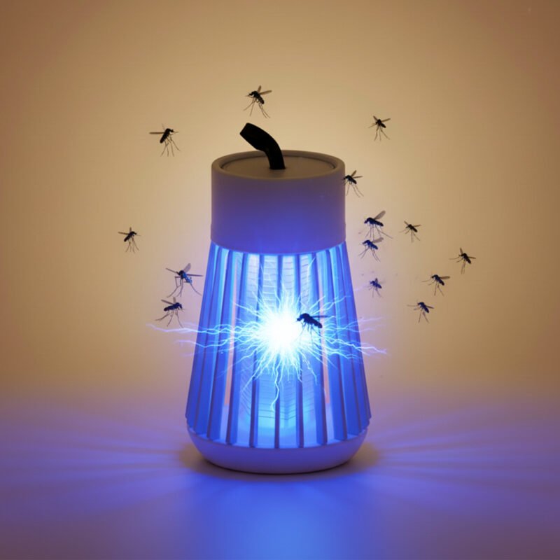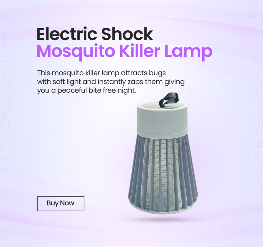 The Electric Shock Mosquito Killer Lamp (Whendrop Store) zaps mosquitoes, flies, and moths indoors/outdoors. USB-powered, 1000V grid, UV light, and IPX4 waterproof. Silent, chemical-free, and covers 320 sq.ft. Includes hanging hook + manual.