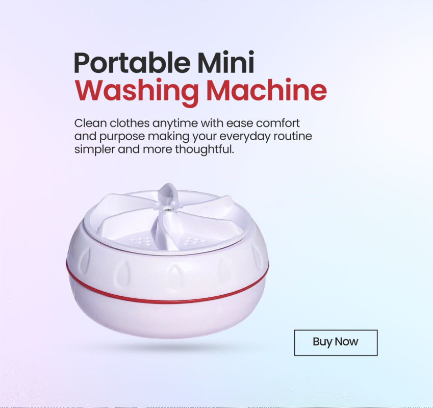 The MiniWashing Turbo Portable Washing Machine (Whendrop Store) offers USB-powered ultrasonic cleaning for travel. Wash 1kg of clothes, fruits, or small items with 90% less water/energy. Compact, lightweight, and auto-shutoff at 30 mins.