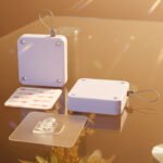 β’ Attach the square unit on the door frame using the provided screws or double tape.