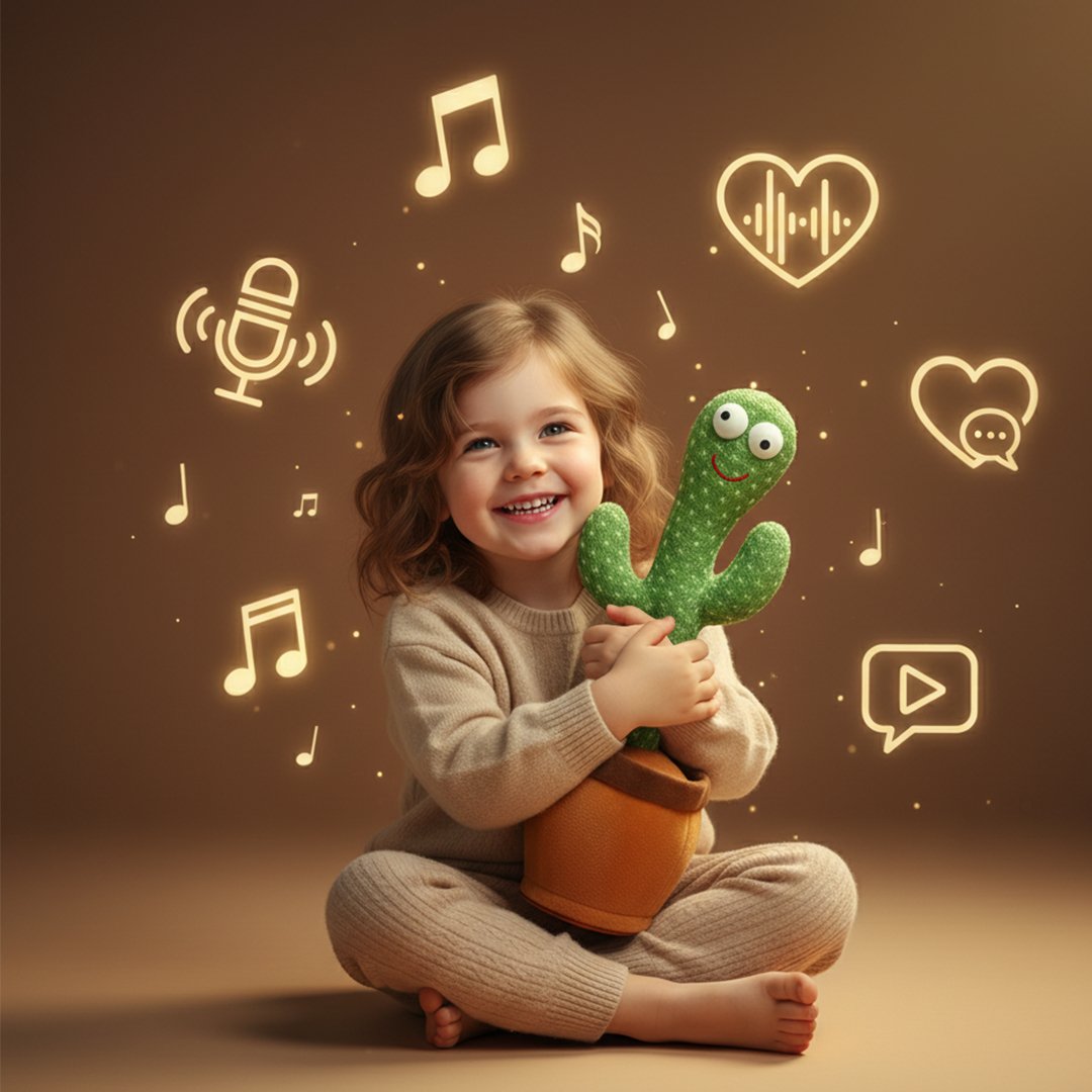 It can record and mimic voices, play cheerful songs, and move to the rhythm, turning playtime into a fun learning experience. Safe, rechargeable (or battery-powered), and suitable for kids aged 1 and above, this lively cactus is a perfect gift that brings laughter, music, and joy to every child’s day.