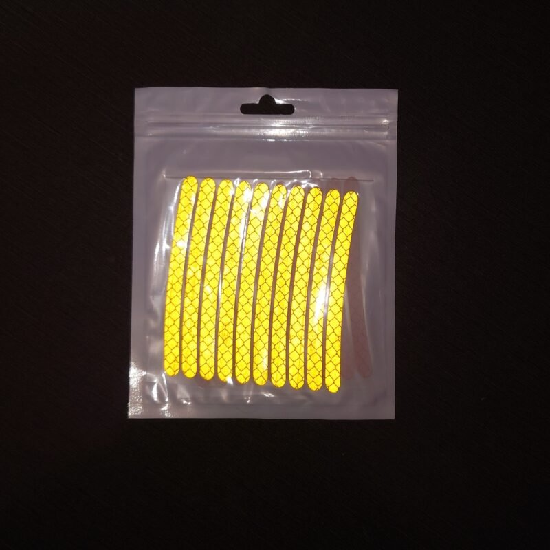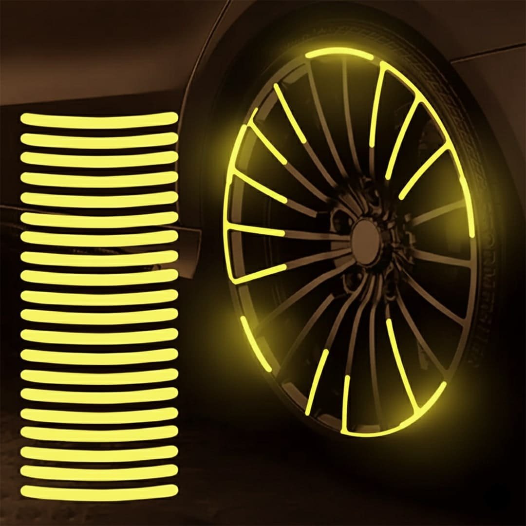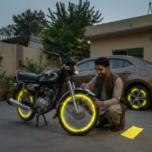 These yellow PVC rim stickers instantly enhance the look of your motorcycle, car, or bicycle with a clean and reflective finish. Each sticker is self-adhesive, waterproof, and shines when light hits itβ€”making your wheels stand out day or night. With 20 stickers in one packet, it perfectly covers one motorcycle wheel or two car wheel cups. Durable PVC material, strong grip, and easy application make it a long-lasting and stylish upgrade for any vehicle.
