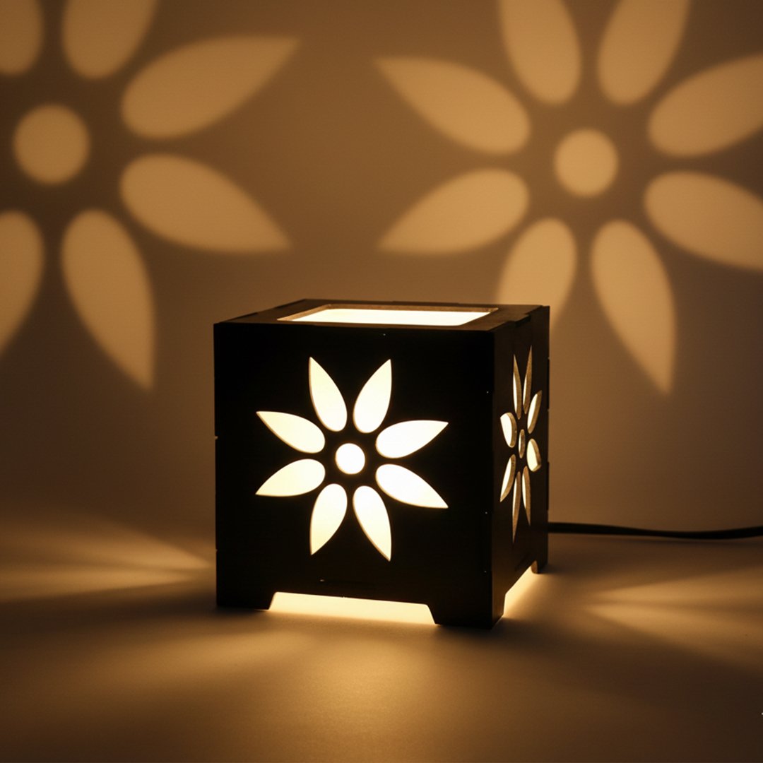 • Laser-Cut Design: Creates stunning light patterns on walls at night.